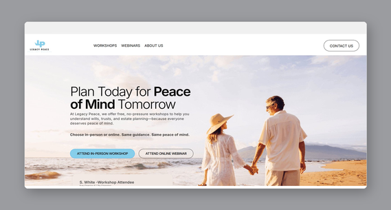 Legal Services: Legacy Peace is a purpose-driven estate planning platform built to serve individuals and families across the United States. The project centers on accessibility, education, and trust offering free workshops, expert coaching, and a seamless consultation booking experience, all without high-pressure sales tactics….Read More